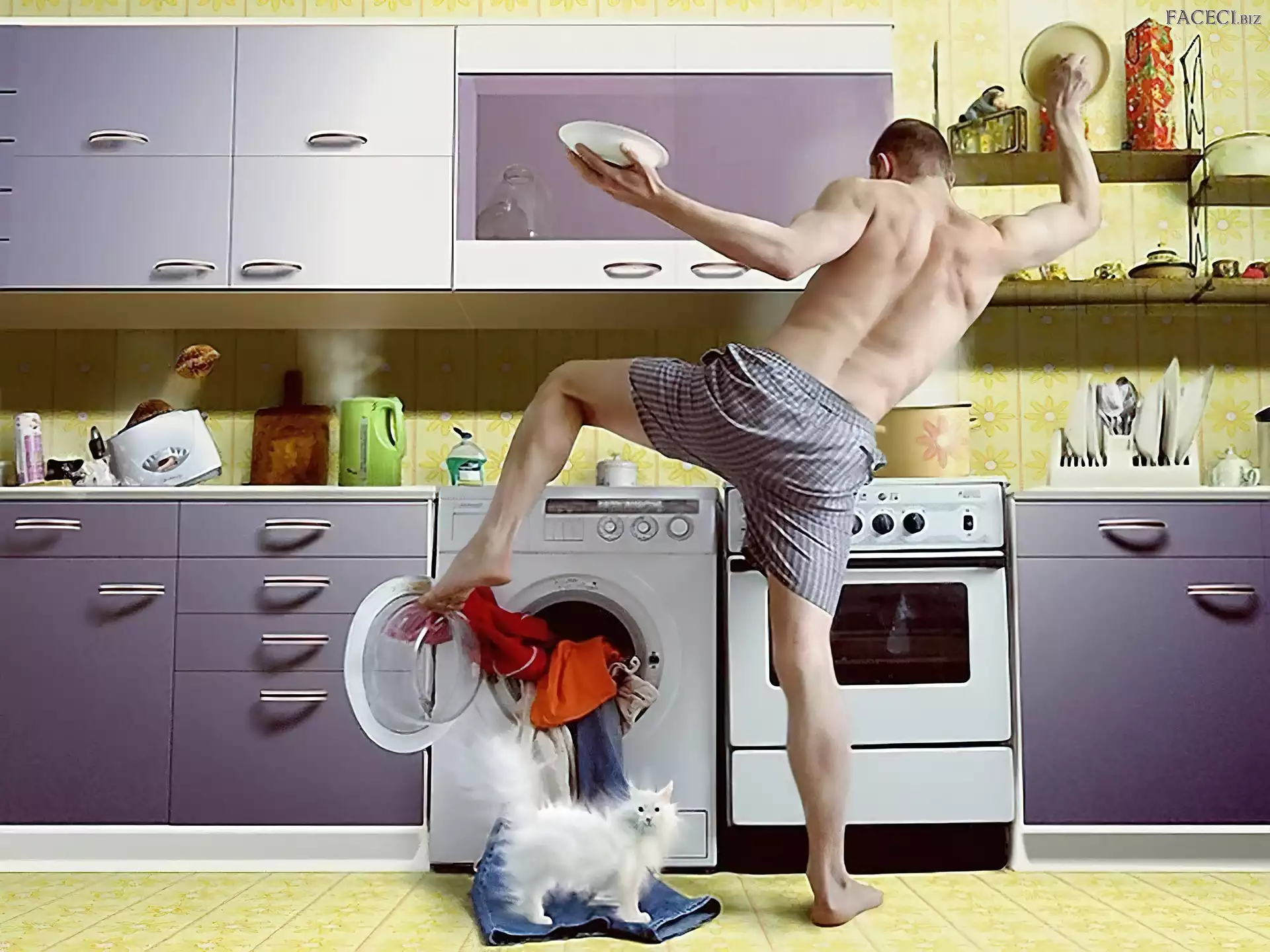 Pranie, Kot, Mężczyzna, Pralka - faceci.biz